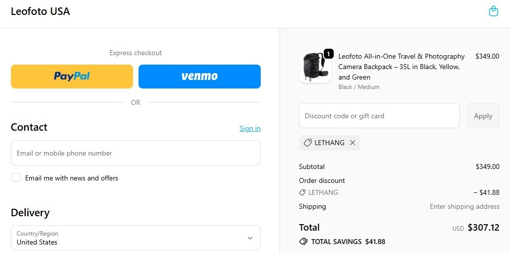 On LeofotoUSA checkout page, look for the text box called “Promo Code” or “Discount Code.” Once you locate it, paste your LeofotoUSA promo code into this box. Your discount for LeofotoUSA will be applied.